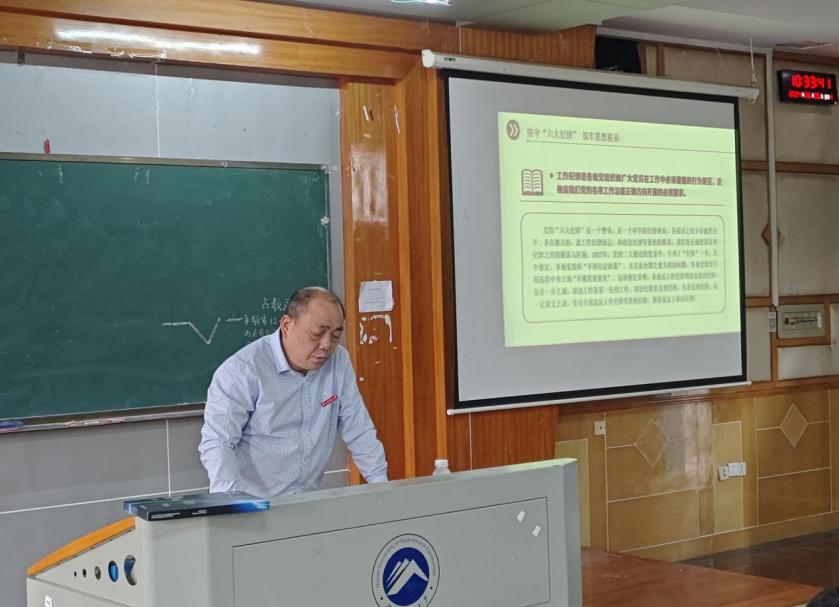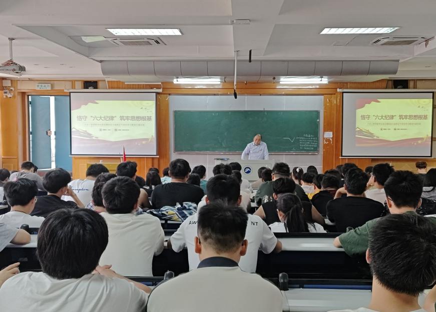 2024年6月6日,必赢国际437官网党委书记万文以“恪守六大纪律,筑牢思想根基”为主题,在第五教学楼2-1教室为全院学生党员讲授专题纪律党课。