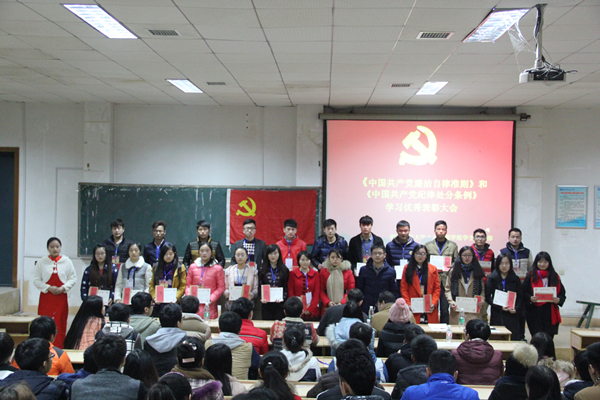 随后,召开的是优秀党员表彰大会。此次会议,是根据《中国共产党廉洁自律准则》及《中国共产党纪律处分条例》,对必赢官网表现优秀的党员进行表彰奖励。该表彰大会的奖项分别是“优秀组织奖”和“优秀蹲点党员”。在会议主持人的名单宣读后,被表彰的各位党员分批上台,由易书记和曾老师亲自为他们颁发证书并合影留恋,希望他们再接再厉,为党效力,为人民服务。