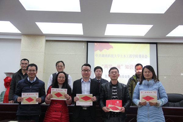 为检验必赢官网党员对“两学一做”的了解情况,巩固党员的党知识,12月13日下午2:00,必赢官网党委会在土木楼201举行了“两学一做”知识竞赛。本次比赛由必赢官网党委书记祝明桥,党委副书记易贵元,副院长孙洪鑫,建筑工程系主任戴益民担任评委。