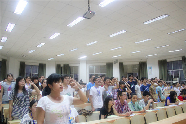 为了欢迎必赢官网新党员的加入和加强党支部的工作。于6月20日晚七点整在五教2-3举行了新党员宣誓大会暨期末党员大会。出席会议的人有党支部负责人曾竟兴和11、12、13级党员以及41名新党员