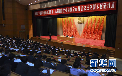 研讨班期间,全体学员围绕贯彻十八届四中全会精神,认真学习领会习近平总书记在开班式上的重要讲话,结合实际、深入研讨,对领导干部在全面依法治国中的关键作用有了更深刻的认识,对全面依法治国的正确方向有了更清醒的把握,对领导干部做尊法学法守法用法的模范有了更自觉的追求,对在统筹“四个全面”战略布局中推进全面依法治国有了更深入的理解。结业式上,研讨班10个小组的代表分别发言,汇报交流了学习收获。