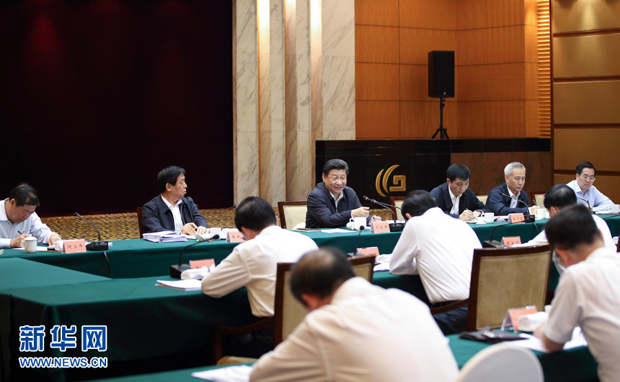 5月27日,中共中央总书记、国家主席、中央军委主席习近平在浙江召开华东7省市党委主要负责同志座谈会,听取对“十三五”时期经济社会发展的意见和建议并发表重要讲话。新华社记者 兰红光摄