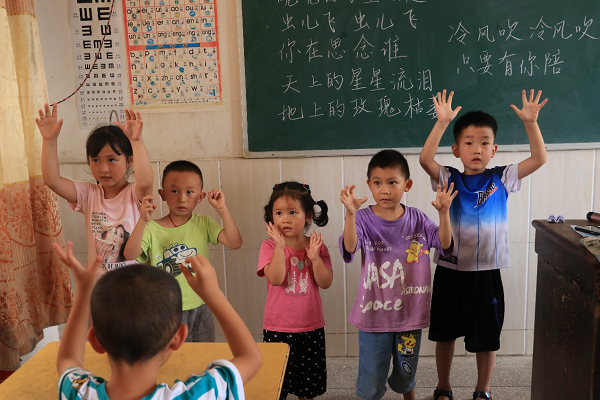 志愿者给孩子们上课