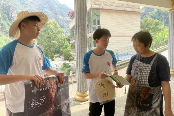 入驻山阳村后,志愿者们分为三个小队,各自有着不同的任务。其中一队由老师带领,将由志愿者提前创作好的三下乡主题扇子送给当地村委,并邀请他们一同参加创作;二队分为四个小组,深入山阳村对“扇送清凉”活动以及后续的支教、调研等一系列活动进行宣传,并且向当地的村民发出扇面创作的邀请;三队负责在村民服务中心开展摆点活动,配合当地村民、引导小朋友通过涂鸦、写字、画画等方式一起放飞思想,创作扇面。