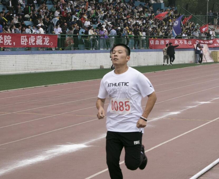 首先上场的是周炜杰选手。站在起跑线上的他专心致志地做着热身运动,眼神坚定,姿势娴熟。在裁判员一声令下之后,他飞快地冲出,就如同那离弦的箭一般,此刻也即是开启了考验意志的比赛。运动员们互不相让,相互较劲,无力感仿佛海水涨潮一般汹涌而来。最后一圈,他仍有节奏地调整呼吸,紧咬着牙,迈着早已透支力气的双腿向前奔着,每一步都是意志力的较量。最后冲刺阶段,他拼尽全力向着终点冲去。之后上场的是20级土木新生邓泽欣选手。刚参加完军训的他留着一头干练的寸头,显得格外的精神。在“砰”的一声令下,他出发了!开始的时候,每个运动员都铆足了劲,一窝蜂地冲了出去。随着时间的推移,大家的体力都在一点一点耗尽,他仍保持加速的状态,稳扎稳打。最后上场的李卓选手,在跑道上轻松应战,对自己满怀信心。果然,在跑道上他的身影一晃而过,冲刺阶段也不减起跑时气势,全力以赴,选手们较量超常的体力,拼搏出类拔萃的毅力,在长长的跑道上,留下长长的坚持。