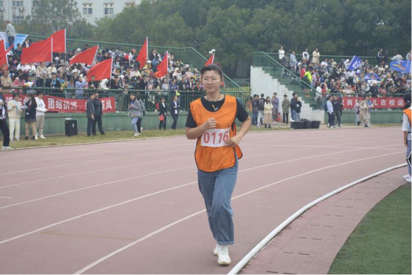 随后上场的刘艳英在比赛开始就位居队伍的前列,此时土木学院的观众席上爆发出了强烈的惊呼,他们为刘艳英而摇旗呐喊,但由于在前期体力消耗过快,导致后面300米体力不支被其他选手超过。最终刘艳英排名相对落后,可越过终点时她的眼神依旧坚毅,一如开始,这正是土木学子愈挫愈勇,永不言弃的精神体现。比赛结束后,刘艳英在赛后采访中表示她之所以选择1500米这个项目,是因为她觉得在自己即使爆发力上比不过他人,但她拥有土木学院不畏艰苦,锲而不舍的精神。她一路跑下来看着别人一个个超过她,甚至感到绝望,但是观众席传来的加油鼓励声,让她坚持下来,跑出了土木学子的风采。