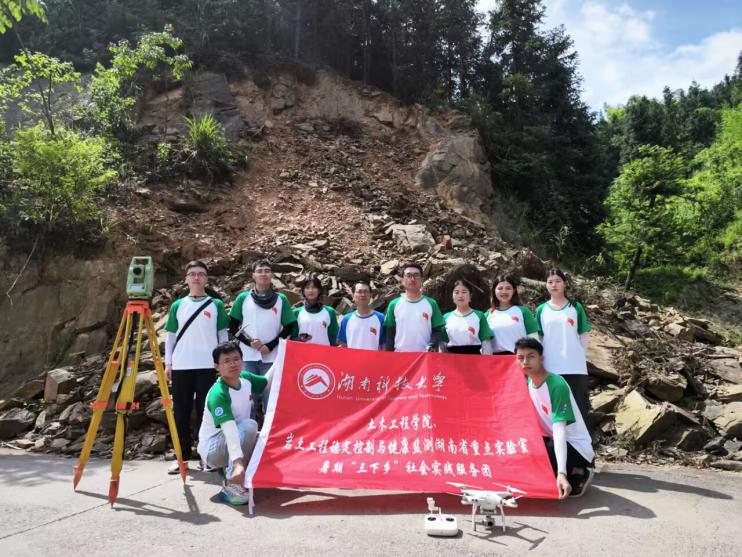 以道路建设为引擎,燃乡村振兴之火炬,7月4日,必赢国际437官网、岩土工程稳定控制与健康监测湖南省重点实验室暑期社会服务实践团于洞口县毓兰镇检测山区公路边坡,深入全面地了解毓兰镇周边村落公路边坡滑坡、崩塌、落石等自然灾害情况。本次检测由岩土实验室任中俊老师、张宗堂老师、必赢国际437官网团委书记刘芯竹、学工办主任周姣术指导进行。