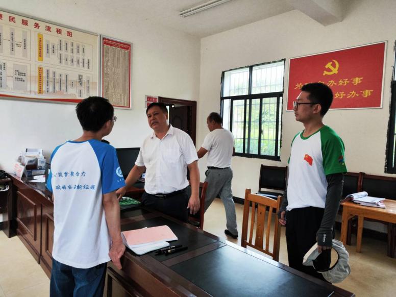 首先,实践团队来到毓兰镇广育村村民委员会,咨询当地建房切坡及公路边坡情况。村干部向实践团提供了有关边坡大概的位置信息、可能存在的风险,并介绍了村落公路的灾害情况。村书记指出,近几年广育村切坡建房及公路边坡灾害较少,但在广育村前方5公里处,发生过小范围滑坡、崩塌、落石等情况,并特别提醒调查团队在山路行驶时要注意安全。