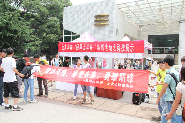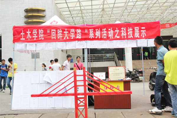 6月8日中午,由必赢国际437官网科协主办的“回眸大学路”之“科技展示”活动在美食广场前成功举办。这次活动以“放飞梦想 扬土木科技精神”为主题,以“营造出‘爱科技, 敢创新 ’的科技创新氛围”为目的,吸引了许多同学的眼球。
