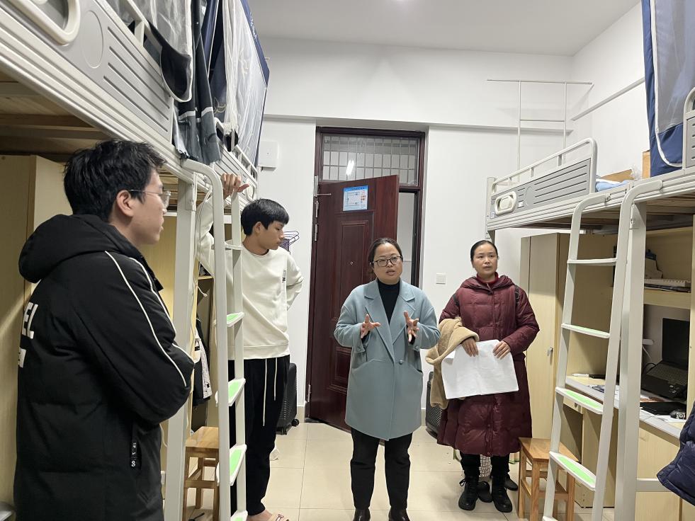 在本次下寝活动中,老师们重点了解学生学业发展、宿舍安全、环境卫生及心理健康状况,为同学们送上新学期的关怀与指导。走访期间,辅导员对上学期存在学业困难的学生,结合课程特点提出具体建议,督促同学充分利用时间学习;在查看宿舍环境时,辅导员仔细排查安全隐患,强化安全意识;提醒同学们要保持养成良好学习、卫生和文明习惯,勤通风、勤打扫,避免细菌滋生;养成良好的作息习惯,摆正学习心态投入到新学期专业课学习当中,为新学期开好头、起好步。
