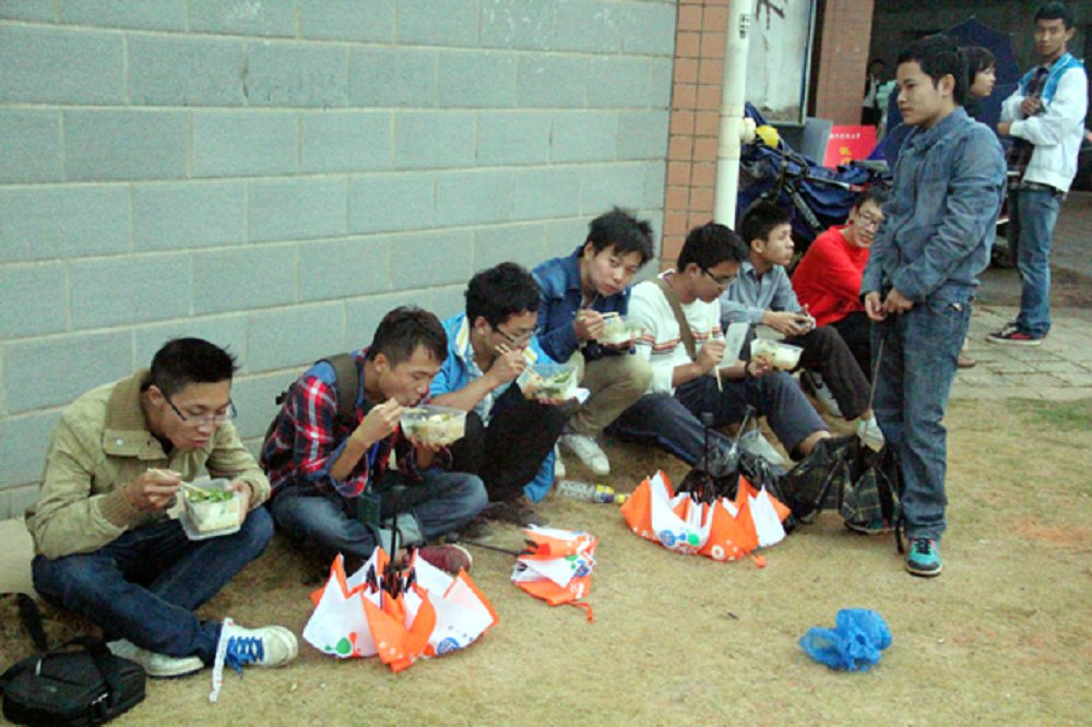 一种等候,一种热爱。夜幕漆黑,细雨纷飞,守候的助班蹲点及工作人员,一直在坚守。没有新生抵达注册报到时,他们聊着天,互相打趣,始终保持清醒,只为给接下来的新生提供帮助,让他们感受到爱与温暖。