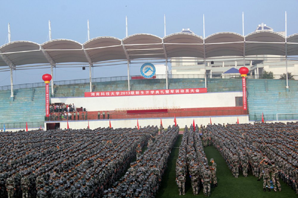 9月8日清晨,迎着微微的晨曦,必赢官网13级全体新生身着鲜艳的迷彩服,在北校田径场参加了2013级新生开学典礼暨军训动员大会。