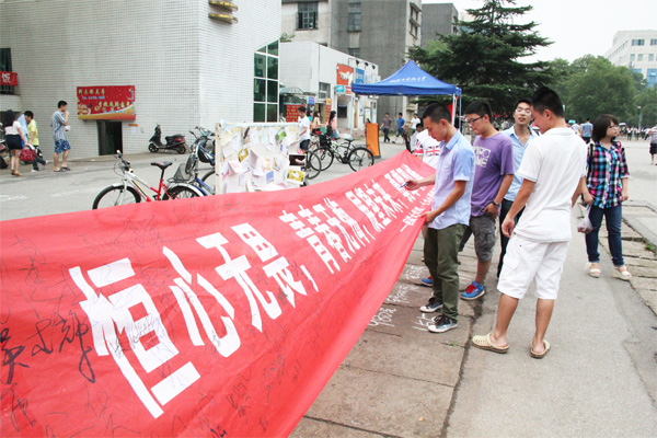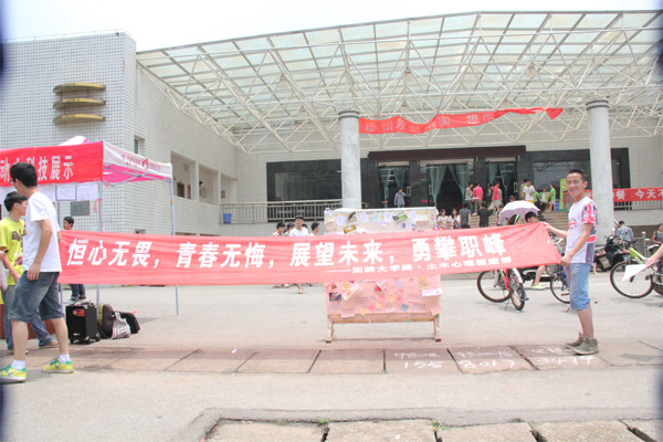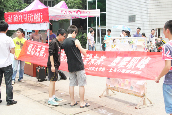 6月8日中午,由必赢国际437官网心理健康部主办的“回眸大学路”之“毕业寄语”活动在南校美食广场前成功举行。心理健康部以“恒心无畏,青春无悔,展望未来,勇攀职峰”为口号,发动全院学生将他们想对大四学长、学姐说的话写在便利贴、贺卡或者明信片上,最后展示在宣传板上,以表达对毕业生的祝福。