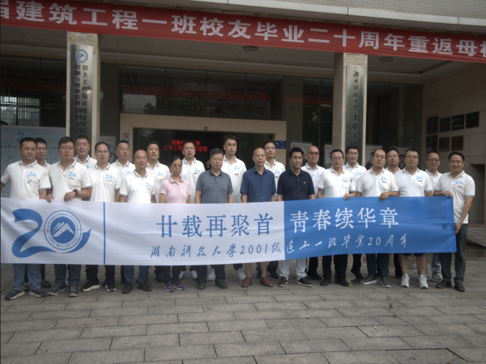 7月12日,20名01级建工一班毕业生时隔二十载重返母校,与当年的任课老师祝明桥、胡秀兰、石卫华、丁时宝四位恩师于必赢国际437官网土木楼230会议室相聚一堂,在熟悉又陌生的校园里重温青春岁月,共话师友深情。
