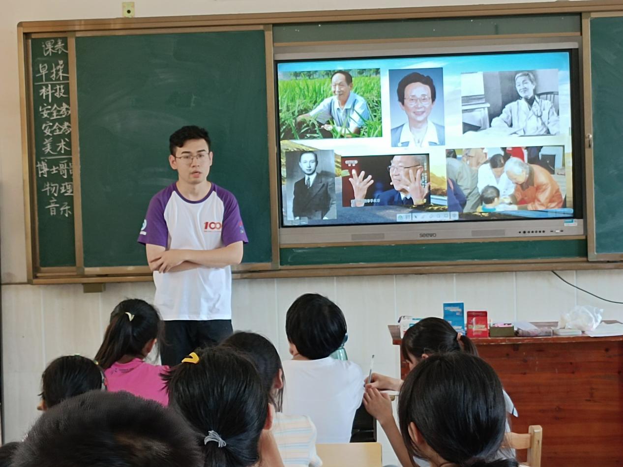 “你们的梦想是什么?我的梦想是成为一名探寻真理,促进社会进步的科学家”——博士哥哥王楚贺用轻快的语气向孩子们讲述了他的远大理想与抱负,以及他为理想所奋斗的过程。除此之外,他也向孩子们简单地介绍了志愿服务团为大麻溪村等村落所进行的各项服务工作,如房屋检测、水质勘察,让孩子们树立“科学覆盖生活,技术服务百姓”的意识。