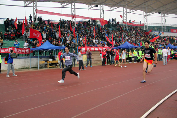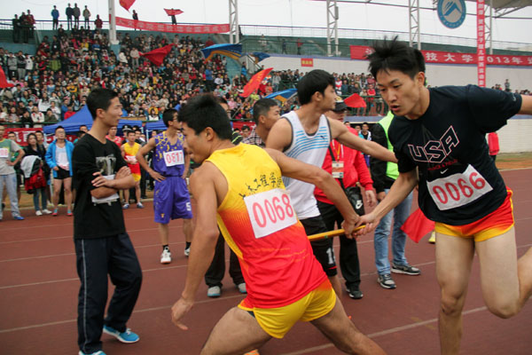 10月18日上午11点,必赢官网2013年秋季运动会田径男子组4x100米、女子组4x100米接力赛在北校新田径场进行。其中必赢官网女子代表队获得第六名,男子代表队获得第八名的好成绩。