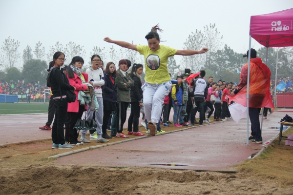 尽管比赛现场寒风肆虐,但依旧阻挡不了摇旗助威的观众,更阻挡不了运动健儿冲刺的步伐。观众的热情、参赛队员的自信,构成一幅暖意融融的画面,仿佛让四周都暖起来了……看,随着裁判的一声令下,助跑、起跳、飞跃、落地,动作一气呵成,等到她们跳完了,旁边就会有热情的志愿者为他们服务,递纸巾、送衣服……忙的不亦乐乎。伴随着每个参赛队员的跳跃,空中就会浮现出一条条优美的弧线,最终每个人都在沙坑中留下了属于她们的美丽脚印。在赛后的采访中,陈境健说:“虽然成绩不太理想,但是没关系的,比赛重在参与嘛。”