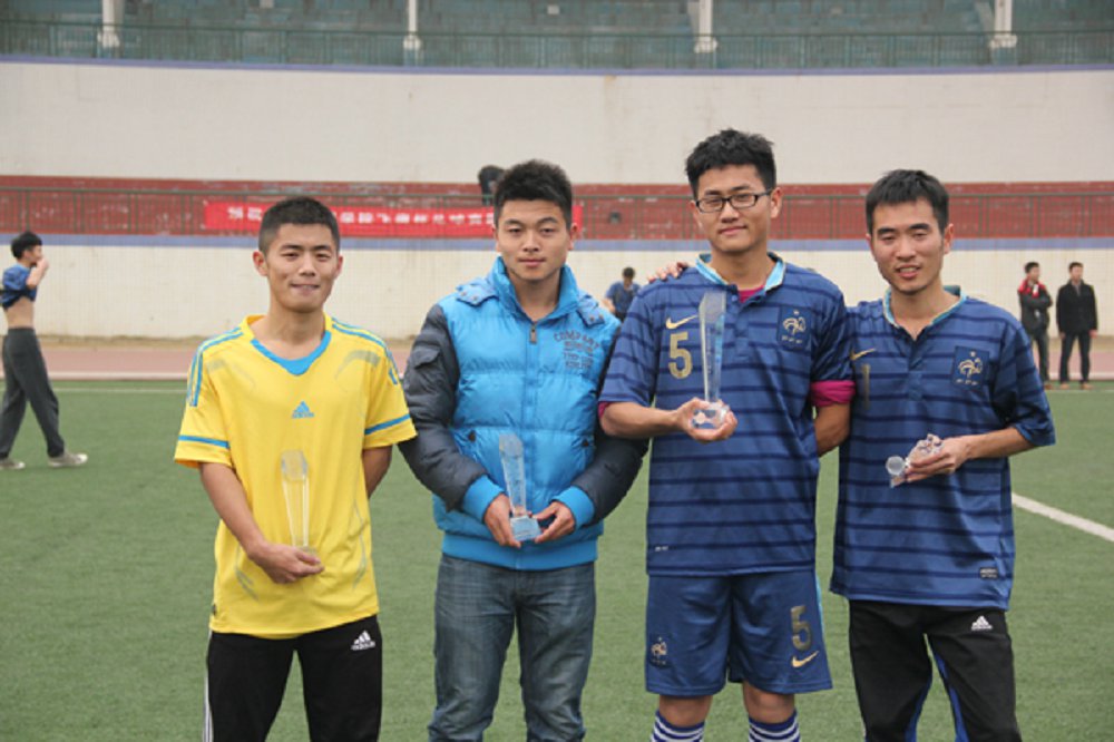 天气虽然转凉,不见阳光,但田径场上的热情并没有因此而减退。两支球队早早地来到场地开始热身训练。十一点二十分左右,随着一声哨响,比赛正式开始。在上半场的比赛中大三联队以1:0的优势领先一分。随后在下半场比赛中大三联队又将比分优势拉大了两分。最终,大三联队以3:0的优势获得本次比赛的冠军,大四联队也以出色的表现成为亚军,大二勘察建工联队荣获季军,大三联队的梁希超等球员荣获最佳球员奖。随后颁发了奖杯,比赛圆满结束。