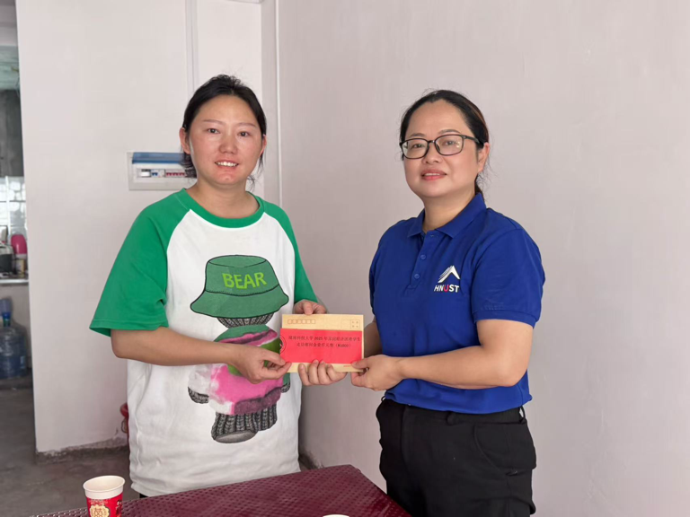 7月5日学院党委副书记陈笑和辅导员郑红霞驱车抵达娄底涟源市伏口镇山区,走访因心理困扰与学业受困提前返乡的特殊困难学生吴同学家庭,并送上专项慰问金。这场跨越200 公里的家访,是学院"暑期暖心行动"的重要实践。
