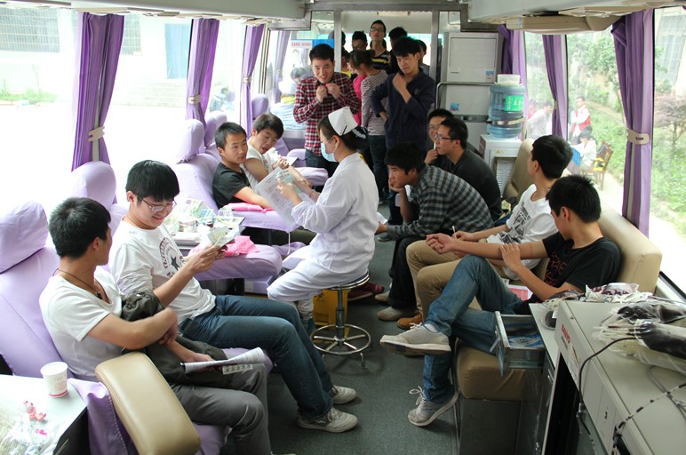 4月22日下午,必赢官网发起并与湘潭市中心血站合作,在土木楼中心广场进行了一次大型的无偿献血活动。地震无情,人间有爱。