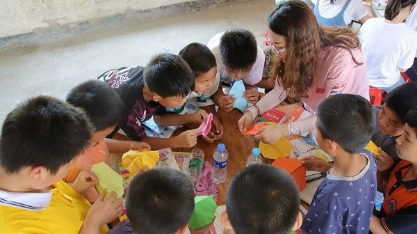 “老师,快看我折的!”,一位小朋友高举着自己的折纸作品迫不及待地向志愿者展示,这是必赢国际437官网暑期“三下乡”社会实践团队正在进行的感恩系列支教活动中的一幕。为了教会孩子们在生活中懂得感恩、未来回报社会,社会实践团队于7月13日来到了湖南省邵阳市洞口县大合村开展感恩系列支教活动。今天的课程是本次感恩系列支教活动的第一部分——开在手里的“花”。