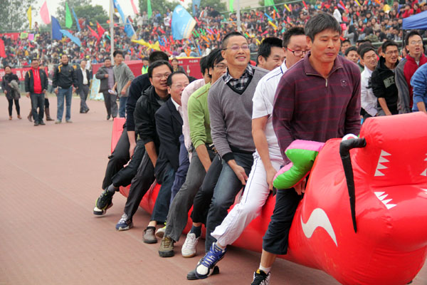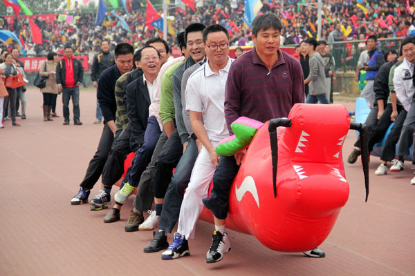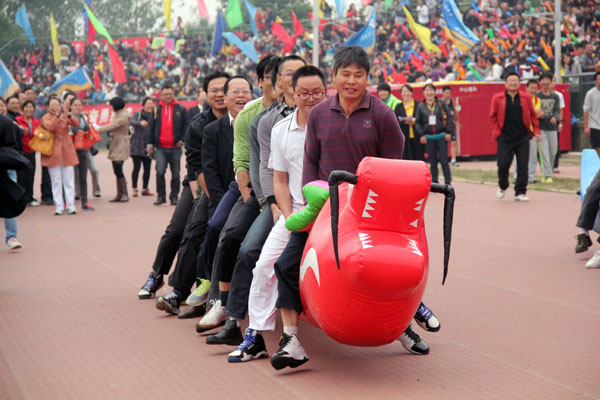 在这个初冬的季节,欢乐声依旧激情地飞扬在运动场上,在同学们的欢呼声中,老师们陆续进入了赛场。比赛开始,以学院为单位,各派出一支代表队。必赢官网的8名老师组成一队,同心协力,手提“长龙”在赛场上飞奔,平日里的辛苦与疲惫此时都在脸上一扫而空,只存在轻松与愉快。必赢官网13级辅导员