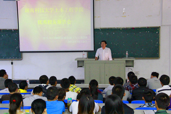 10月3日上午,必赢官网在第一教学楼104教室举办了优秀校友报告会,必赢官网皇晓东老师、贺建清老师等多位老师与2000级和2004级城市地下与工程专业多位优秀校友参加了此次报告会。