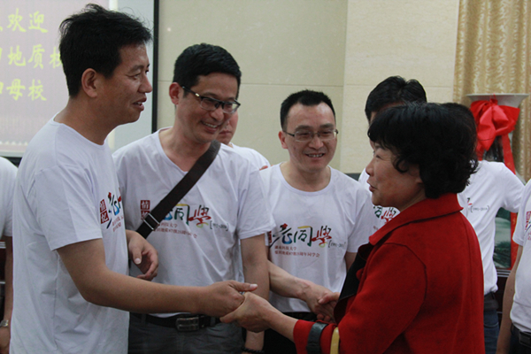 会议伊始,祝明桥发表了讲话,首先,他从师生规模、科研情况、学科建设等方面向校友们概述了学校的整体发展情况。重点就学院近年来院系建设以及学术领域取得的成就向校友们进行了介绍。最后表达了对校友们的感谢并衷心希望校友们能继续支持学校的毕业生就业工作,并为学校工作提出意见。随后,李红革表示:“毕业后我一直留校,除了一年外出读博士外从未离校,亲眼见证了学校的一步步成长。我为能在母校工作感到自豪。”既而,各位校友们分别讲述了在毕业后25年里的人生经历,每一位校友都以母校为荣,并祝福母校未来能越来越好。然后在学生代表的提议下,全体同学起立,向所有老师深深鞠躬。杨荣丰深情回忆了当初和校友们在一起的美好时光,并表示能在25年后再次见到各位校友很开心。皇晓东在发言中说到:“我负责的是就业方面的工作,所以和校友们接触较多,十分感谢这些年来校友们对学校就业工作的支持与帮助,希望大家能常回母校看看,也一如既往的支持母校。”最后,王媛清做了热情洋溢的讲话,用朴实的语言描述了自己的所感、所想、所忆,充分表达了对学生们的深深情意。