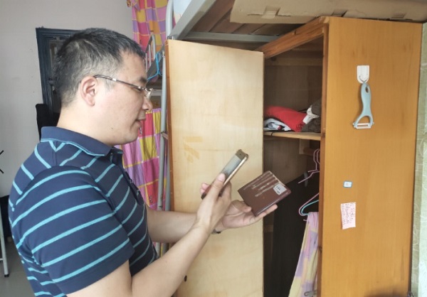 6月2日下午在八区9栋107宿舍,院长祝明桥给家在舒兰的学生王雨桐拨打了视频电话。作为班主任,祝院长特别关心雨桐居家隔离的情况,因为舒兰市新冠肺炎疫情处于高风险等级。疫情带来的漫长假期也让院长很担心学生的心理和学习状态。视频通话中,祝院长详细询问了各方面的情况,又从书架上寻找到《高数》的两本书,从衣柜里找到了蓝色外套和条纹T恤叠好,从桌下翻出了两双鞋子装进了鞋盒。将带来的打包盒装入邮寄物品,祝院长仔细地写上邮寄信息和物品名称,然后放到了邮寄车厢里。