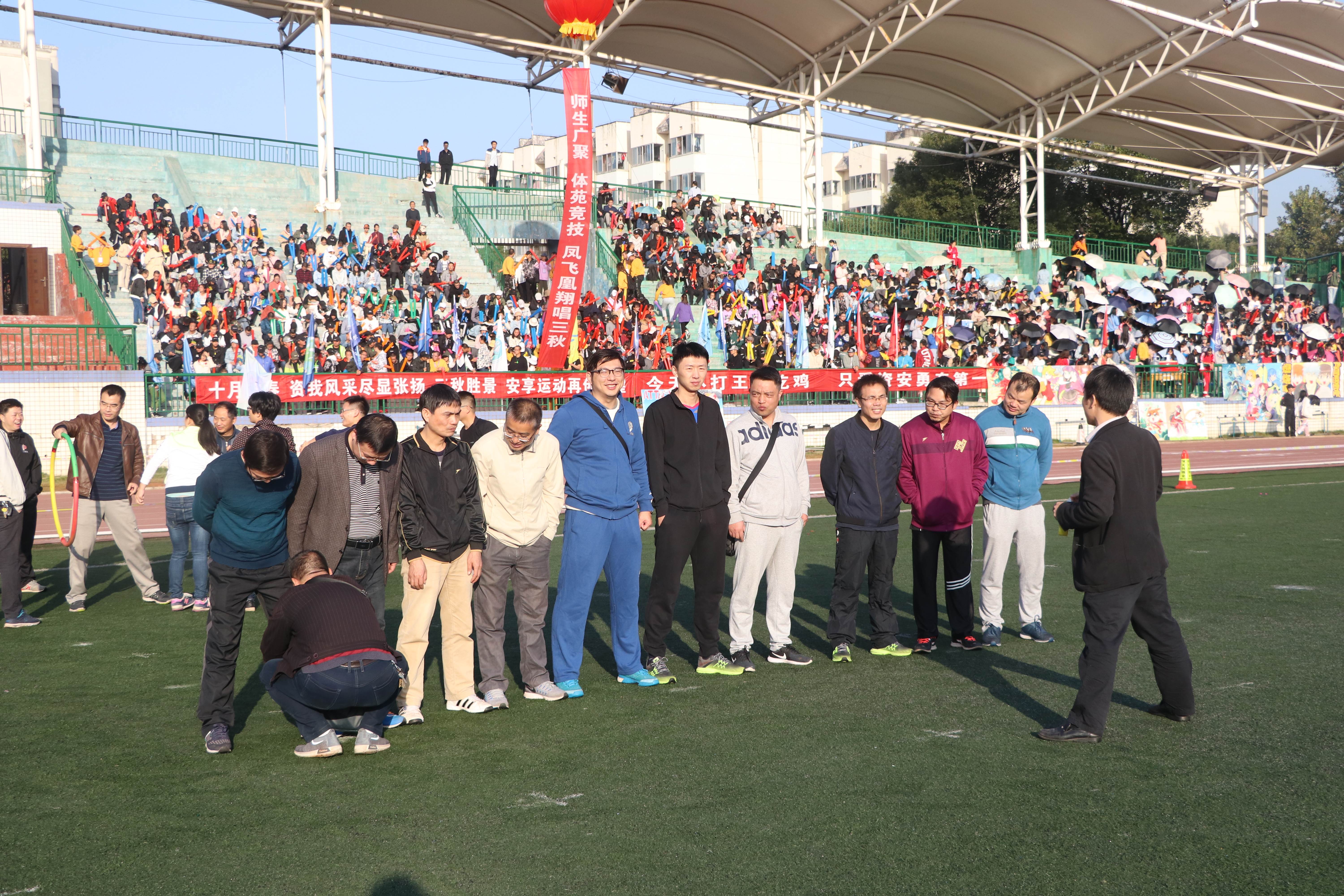 10月28日,必赢官网第一田径场内彩旗飘扬,呼声连天。8:00,第三天第一项赛事:教工蛟龙出海比赛正式开始。必赢官网全体领导老师到场助阵,必赢官网建筑工程系主任黄海林、道路与桥梁工程系主任陈炳初、温青等十名教师参加本次比赛。