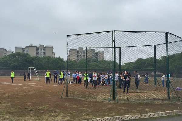 阴蒙的天空中夹杂着丝丝细雨,那田径场上举起的雨伞也形成了一道靓丽的风景线。比赛正式开始前,运动员手握铁饼,活动手臂找到感觉。三次试掷之后,比赛正式进行。在指定的地方,她们紧握铁饼,挥动手臂,旋转,屏住呼吸,最后用力将铁饼掷出一条美丽的抛物线,她们的动作连贯优美。她们用熟悉的动作,坚定的信念,书写着她们对铁饼的热爱。赛间采访时14级的李瑞青说:“压力很大,但是她会尽自己最大的努力。”15级的刘丽萍和13级的刘秩则表示掷铁饼很顺手,但是还是会有些紧张。雨下不停,但运动场上热情不减,声声的鼓励是运动员们奔向成功的动力。最终刘丽萍以18.74取得了第五名的好成绩,李瑞青也以18.01取得了第七名。在这次比赛中,13级的运动员刘秩虽然没有在决赛中获奖,但是她用顽强拼搏的意志证明了自己。