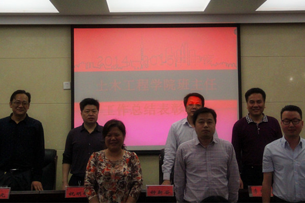 2015年4月28日19点30分,必赢官网在土木楼召开了2014-2015学年度必赢国际437官网班主任工作总结表彰大会。出席此次大会的有学工处处长李红革,院长钟新谷,党委书记祝明桥,党委副书记易贵元,“就业爸爸”皇晓东,以及各年级辅导员和各班班主任。大会由党委书记祝明桥主持。