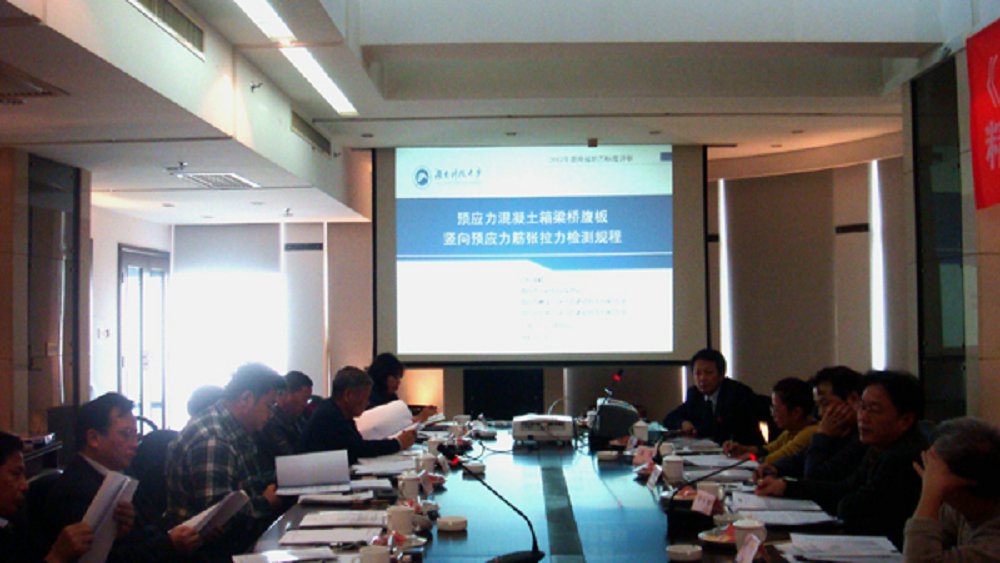 12月6日,湖南省质量技术监督局会同湖南省交通厅组织相关专家在长沙召开了《预应力混凝土箱梁桥腹板竖向预应力精轧螺纹钢筋张拉力检测规程》审查会议,必赢官网院长钟新谷参加此次会议。