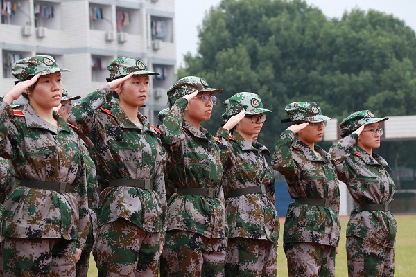 新生们敬礼练习