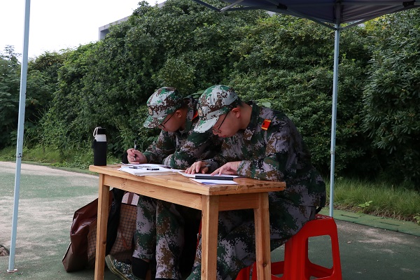休息棚中新生撰写军训心得