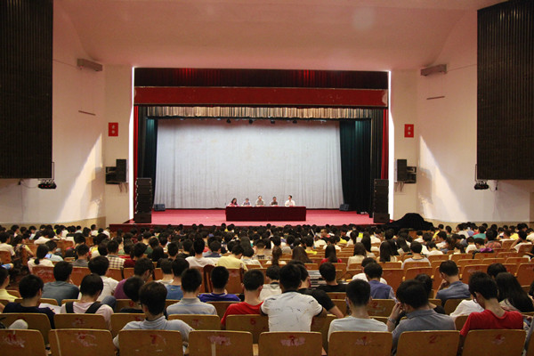 6月4日晚上7:30,必赢官网在南校俱乐部举行12级年纪大会。院党委副书记易贵元,“就业爸爸”皇晓东,学工办主任虢利钢,辅导员曾淑艳、周文杰以及12级全体学生参加了大会。