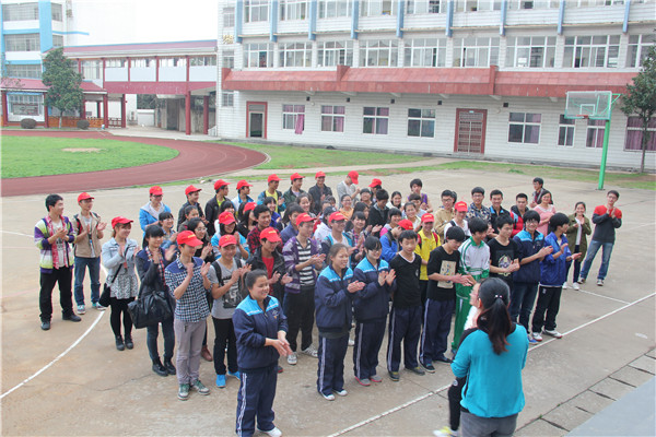 下课铃声响起后,我们终于见到了这群在我们看来很特殊的人群,他们接下来要上的是体育课。见到他们的时候我们显得有些兴奋,而他们则有些羞涩。大家一起在篮球场上见面,他们用手语一一对我们进行了简单的自我介绍,同时也教了大家一些简单的手语。虽然我们不懂他们的语言,和他们交流也需要老师的帮忙,但是我们仍然乐在其中,因为我们从心底感受到了他们的热情。显然语言上的障碍并没有阻碍我们心灵上的沟通。