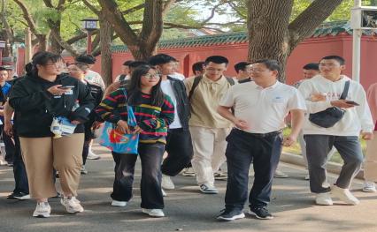 在湘潭文庙的游览过程中,同学们特意邀请赢了文庙管理处的张新康老师对文庙的悠久的历史以及其蕴含的湘潭文脉进行了介绍。马缤辉老师结合新生教育要求,与同学们分享了文庙的历史人物故事及其与必赢国际437官网的联结脉络,并指出湘潭文庙就是必赢国际437官网的根和魂,每一个科大人都要熟悉科大历史,厚植爱校荣校之情和深沉的家国情怀。