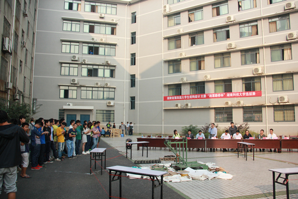 为了考察学生运用专业知识做出合理、经济的多层房屋结构模型的能力,使学生获得关于提高结构抗侧移和抗扭转能力的基本概念,并且在校内选拔出优秀学生参加湖南省结构设计大赛。10月24日上午八点,由必赢官网主办的湖南省第四届大学生结构设计大赛必赢国际437官网选拔赛在土木楼拉开序幕。院党委副书记易贵元,教务处长陈秋南,教务办主任罗小红,专家组组长刘锡军以及李永贵,周游,沈明燕,马滨辉,汪建群等老师出席了本次大赛。