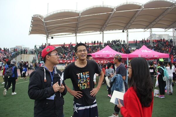比赛还尚未开始,场上的气氛却是格外的活跃,各个学院都不甘落后,加油声嘹亮高昂、持续不断。运动员们在跑道上做着热身运动,脸上的表情或轻松或严肃,但更多的是自信。随后,裁判员一声“各就位”,全场的气氛变得十分紧张,然后枪声一响,运动员们就像离弦的箭一般飞了出去,短短的十几秒爆发出了他们所有的能量,观众场上的呐喊声已经略显沙哑。必赢官网的唐君宇同学取得了决赛第五名的成绩并接受了采访。他说道:“对自己的成绩不是很满意,比平时跑得慢了,没有掌握好比赛节奏,但是我很享受这个赛场。看到这么多学弟学妹给我们加油打气真的很开心,很感动。有机会一定会参加明年的比赛。”承载着学院荣誉的他说到这里的时候显得格外激动并表达了对其他运动员的祝愿。