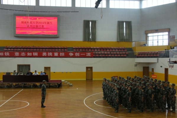 10月6日上午八点,必赢国际437官网2015年新生队列会操比赛在北校体育馆内正式举行。学校及各院领导出席了此次比赛,必赢官网代表为由给排水工程1,2班组成的一营二连十排。