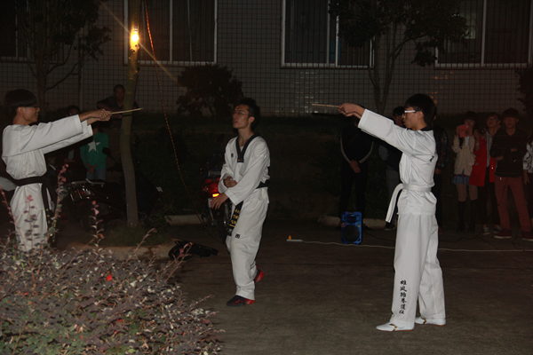 本次演出准备充分,音响灯光一应俱全,旨在为刻苦坚持训练的新生们提供一场视听盛宴。其中有龙吟棍社的成员们伴随节奏感十足的音乐耍着酷炫的双截棍,雄风跆拳道展示了其社员扎实的跆拳道功底,旱冰协会的闪光轮滑表演,文娱部的倾情表演,街舞社的劲爆街舞以及教官之间帅气的搏击更是将现场点燃。每到精彩的地方,同学们都将最热烈的欢呼和掌声送给表演者。