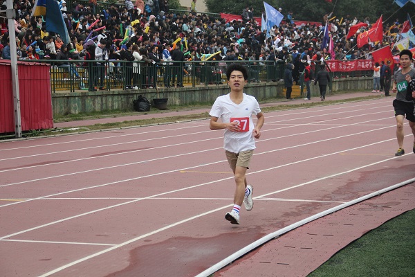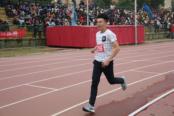 当女子组结束比赛时,男子组也做好了检录工作。代表必赢官网参赛的有谭杰元、莫蔚。在采访中,谭杰元表示此次比赛他心里一点也不紧张,他说:“低调生活,重在参与,也为了自己追求目标而奔跑。”当被问到为什么参加比赛时,他不假思索地道:“对跑步的热爱!” 长跑比赛过程中,谭杰元和莫蔚不断调整自己的呼吸,控制着自己的节奏,在最后冲线的一百米跑道上,他们拼命调动全身力量,超越了前方已经无力加速的选手,完美展现了必赢官网顽强拼搏,坚持奋斗的精神面貌。