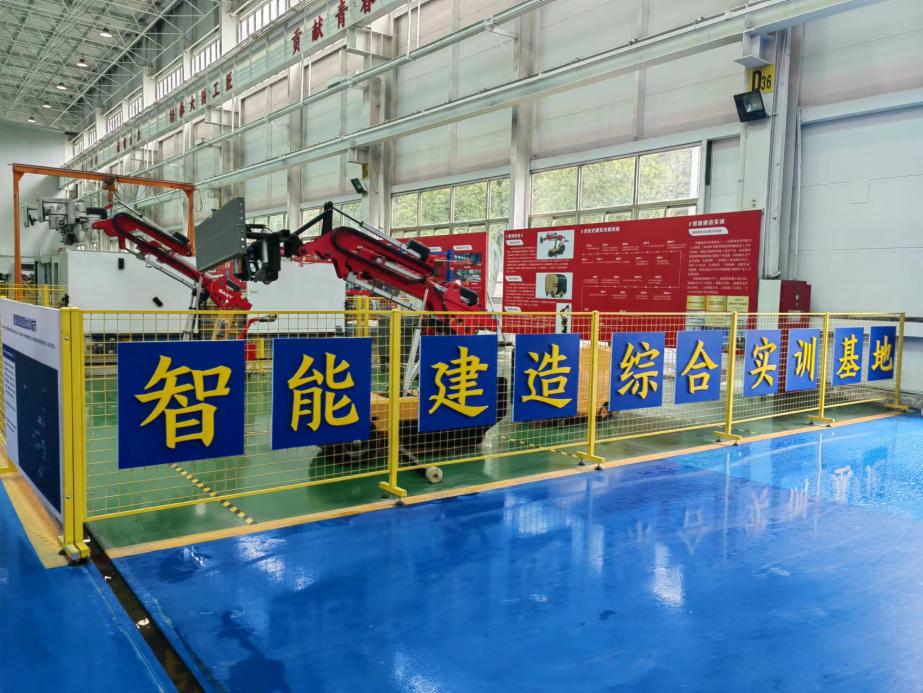 在主题教育联学会后,祝明桥教授一行参观了三一集团校企共建智能建造产教融合实训基地和三一筑工科技股份有限公司装配式建筑产业基地开展智能建造专业建设调研。周诗迪主任、郭剑经理对实训基地的智能建造装备、装配式建筑工艺、学生实训操作仪器、平台等进行了详细介绍。双方就课程体系建设、实践课程设置等人才培养问题进行了深入交流。参观完毕后双方合影留念。