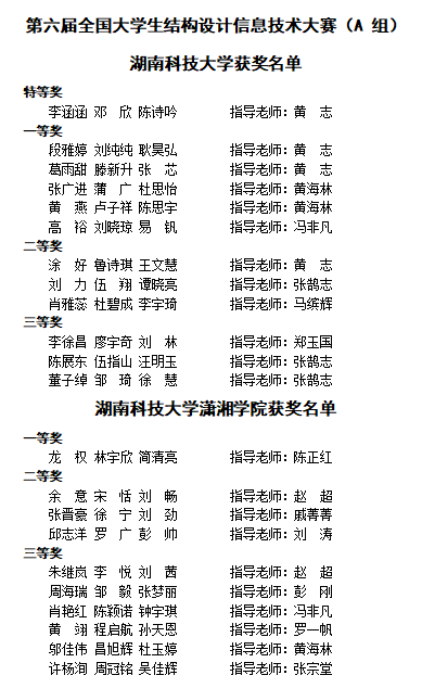 5月20日,由中国土木工程学会教育工作委员会、清华大学土木水利学院主办的第六届全国大学生结构设计信息技术大赛圆满结束。必赢国际437官网共22支队伍获奖,其中包含特等奖1项(参赛学生:李涵涵、邓欣、陈诗吟,指导老师:黄志)、一等奖6项、二等奖6项和三等奖9项。
