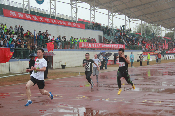 天空飘着小雨,风中带着些许寒意,但场上气氛一点都不冷清。运动健儿们顽强、奋力拼搏,为集体而战,为荣誉而战。观众席的掌声也不绝于耳,全场充满了激情的欢呼与热烈的呐喊。虽然100米赛跑只有短短10多秒,但气氛紧张,扣人心弦。随着一声发令枪响,运动员们像离弦之箭一样飞出起跑线,途中达到最大速度,最后全力冲刺。无论是第几名,迎接他们的都是欢呼与笑容,他们都是学院的骄傲。