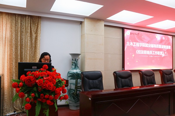 之后,王艳副书记发表讲话。她强调母校是校友永久的“品牌”,校友是母校靓丽的“名片”,是学校发展最具亲和力、最具潜力的优质资源,是学校永远信赖和依靠的重要力量。王书记对联络员寄予厚望,提出四点要求:当好母校精神的传播者,秉承“唯实惟新,至诚致志”的校训,内化于心,外化于行;当好联络校友感情的使者,牢记使命、认真履行职责、密切联络校友;当好不忘初心,敢于担当的奋斗者,在最好的时代做出最努力的奋斗,成为更好的科大人、土木人;当好协同发展的促进者,以服务校友、服务母校、服务社会为宗旨,无私奉献,积极作为,认真开展校友联络工作,充当校友与母校联系的桥梁纽带。会议的最后老师们给联络员颁发聘书并合影留念。