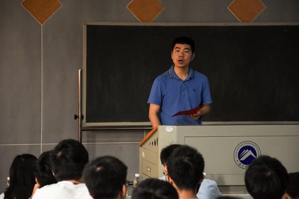在汪建群对两位报告人做了简单的介绍后,谢明的原班主任、颜跃的原辅导员皇晓东对他们的介绍进行了补充,并鼓励土木学子需以优秀学长为榜样,他说道:“在大学期间,我曾是两位报告人的老师,对他们有较为深入的了解,他们在大学期间已是非常优秀,希望大家可以向他们多多学习,从他们身上汲取养分。”紧接着,颜跃、谢明分别为同学们做报告。